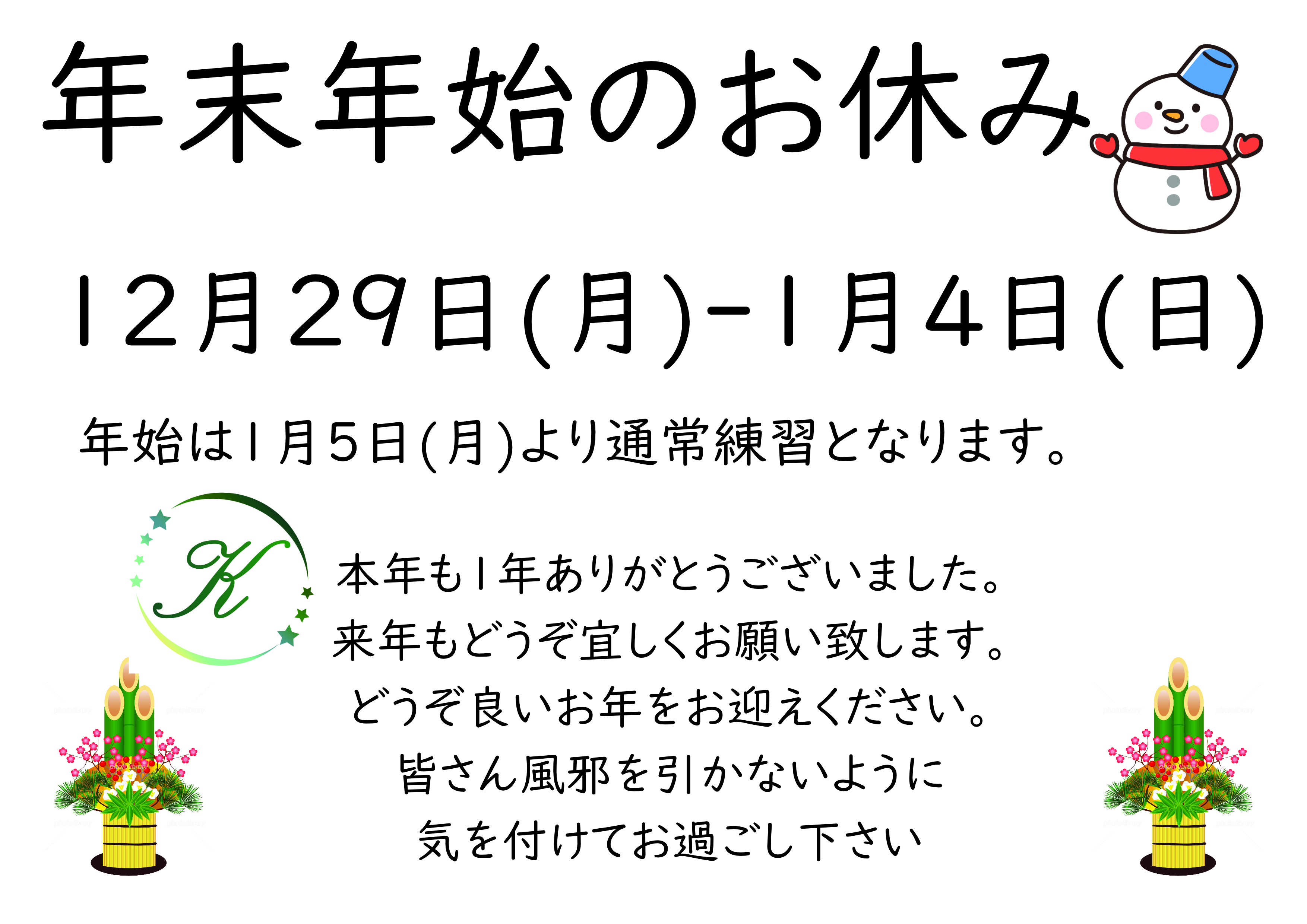 年末年始のお休みについて